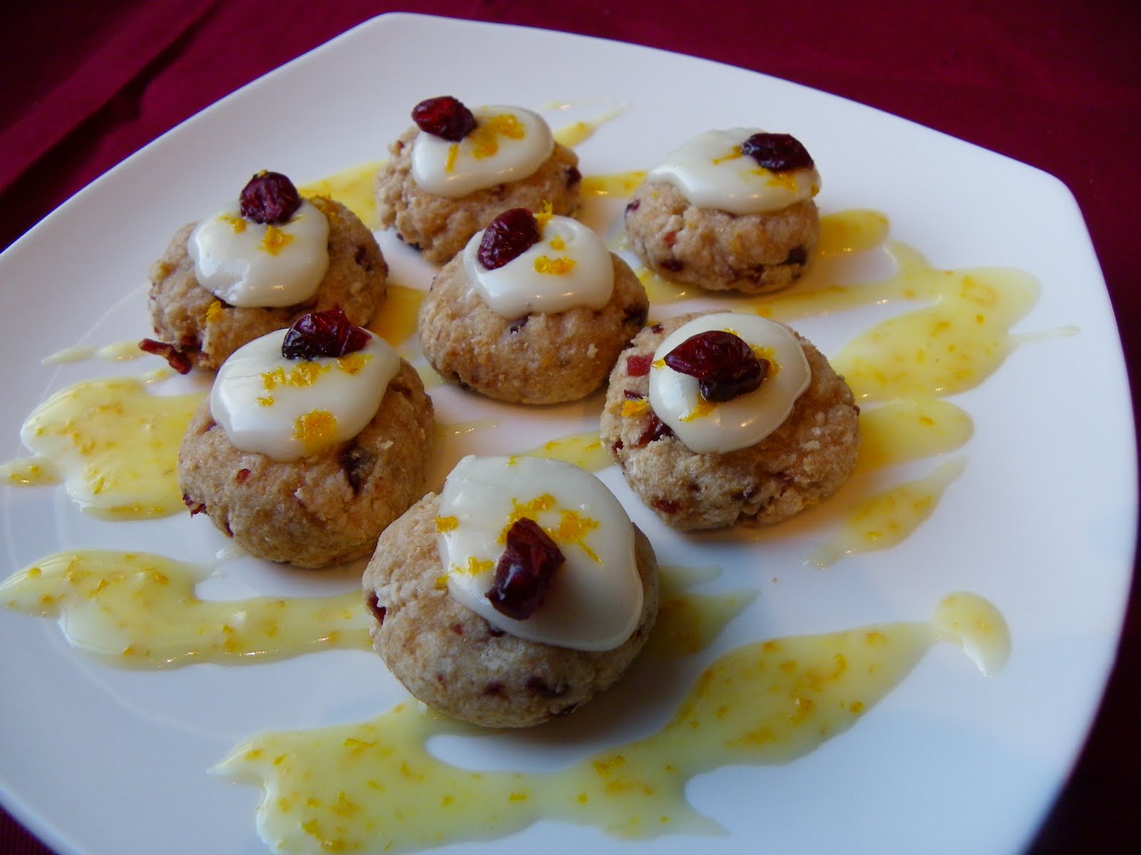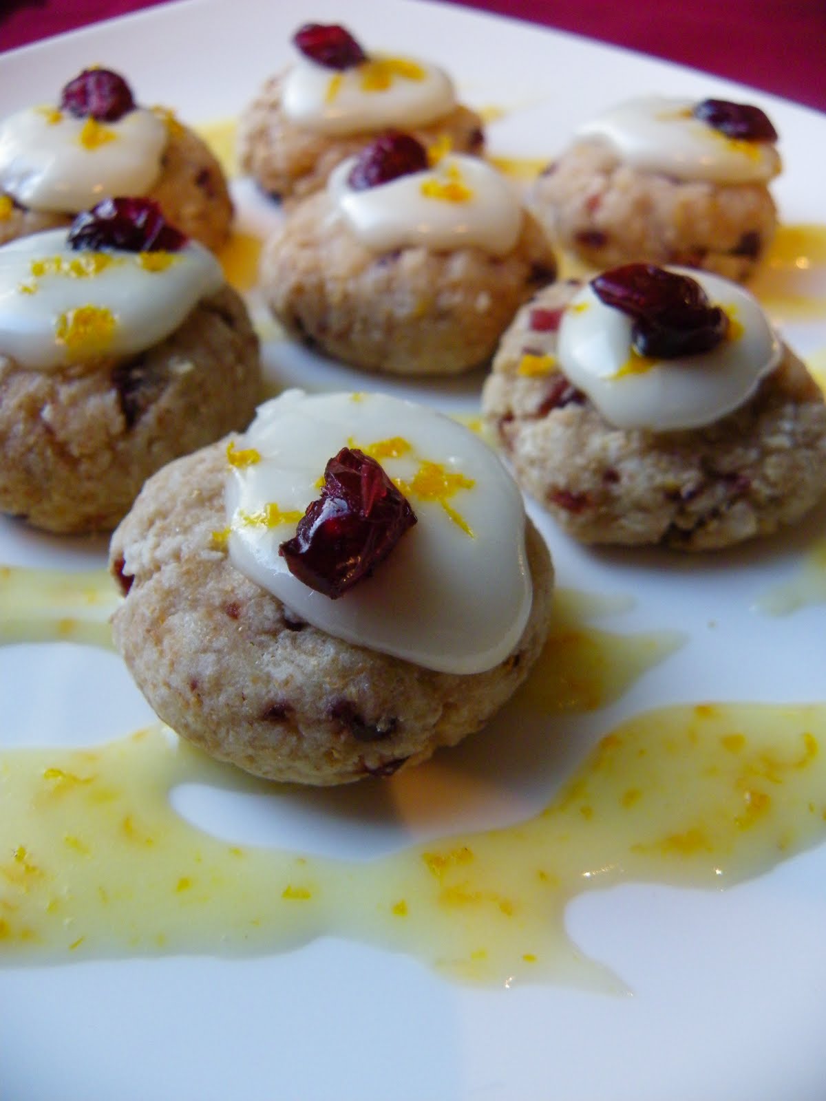 If desired, create a thick icing with orange juice and powdered sugar. Top each cookie with a dollop of icing, a pinch of orange zest and one craisin. Store in an air-tight container. Enjoy!